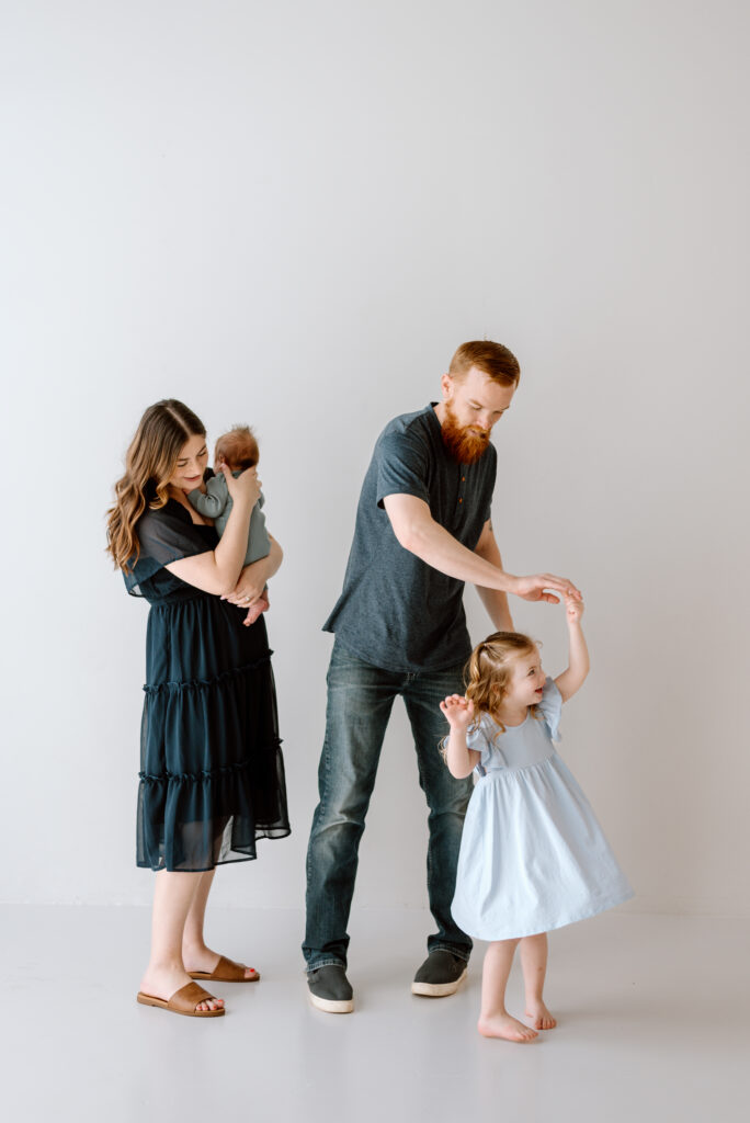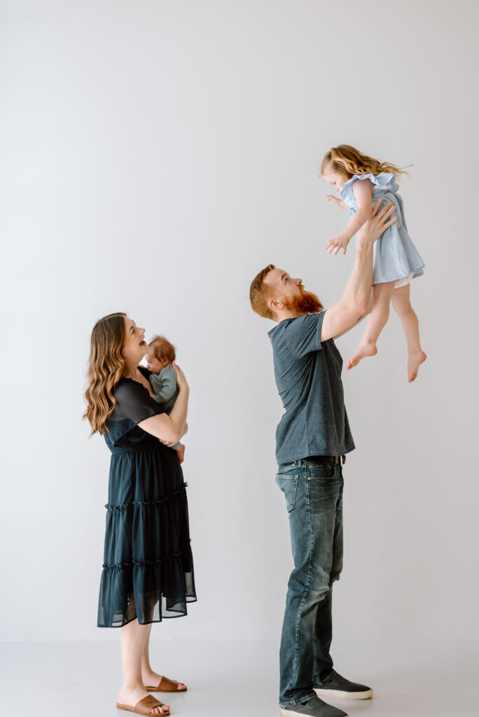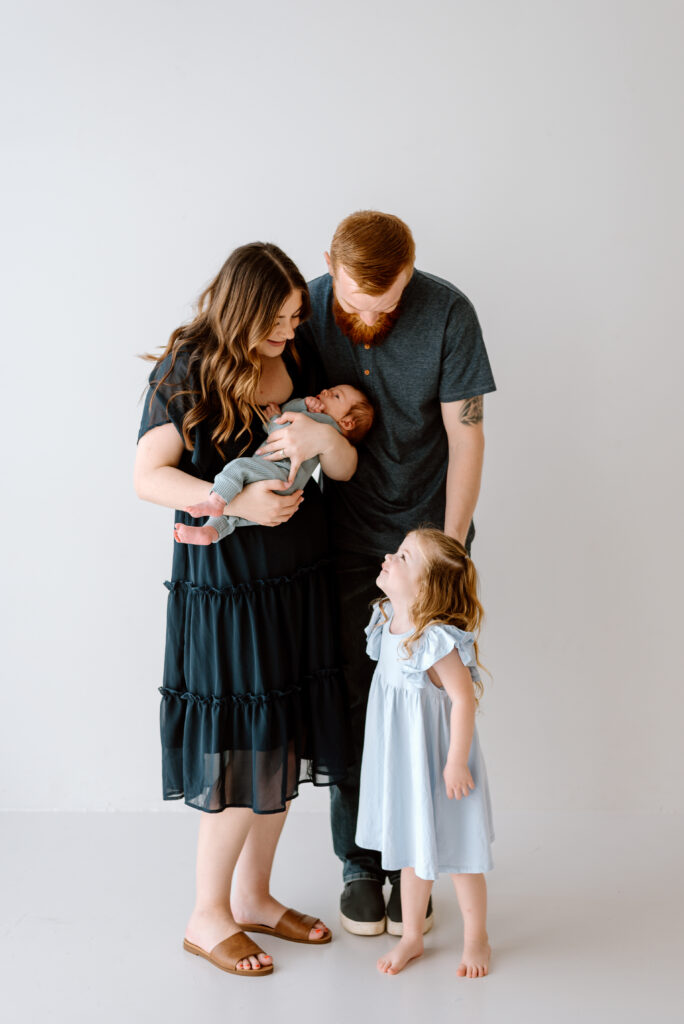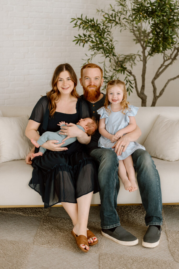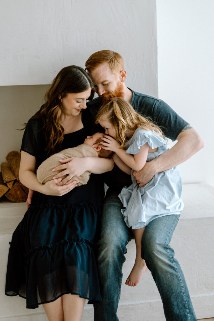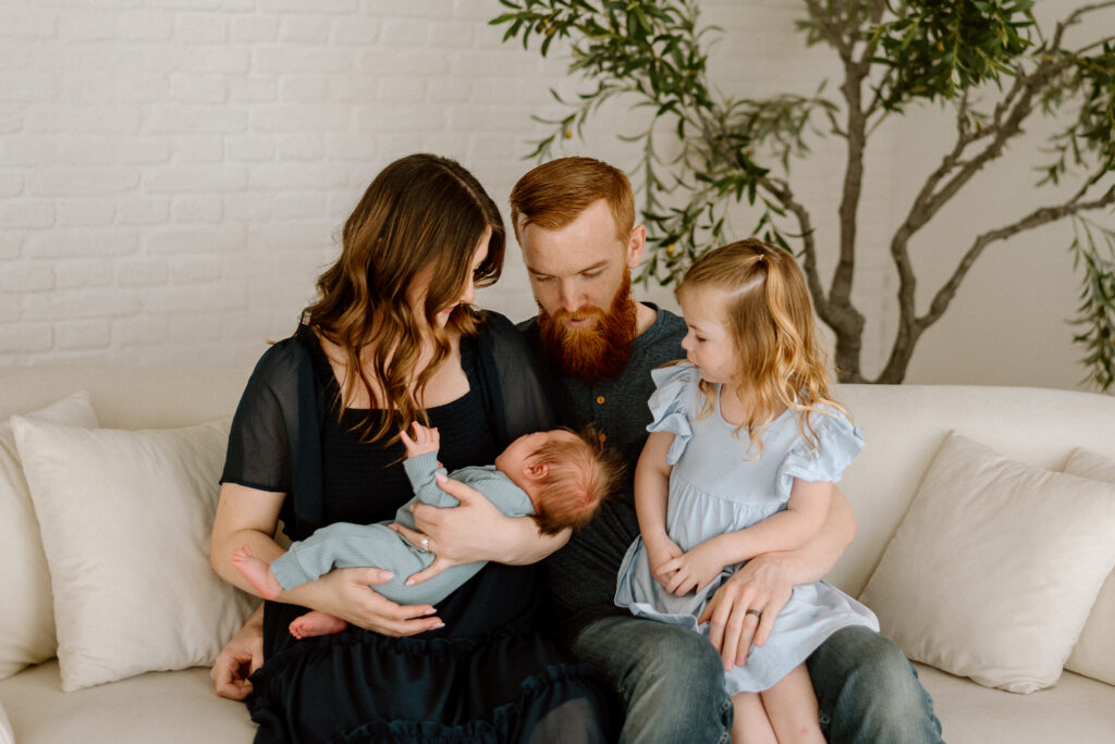 This sweet baby boy joined me at Satori Collective at 5 weeks old, alongside his proud big sister (age 3). The studio’s bright white walls and natural light created the dreamiest backdrop—and this family leaned into it beautifully by choosing shades of blue for their outfits.